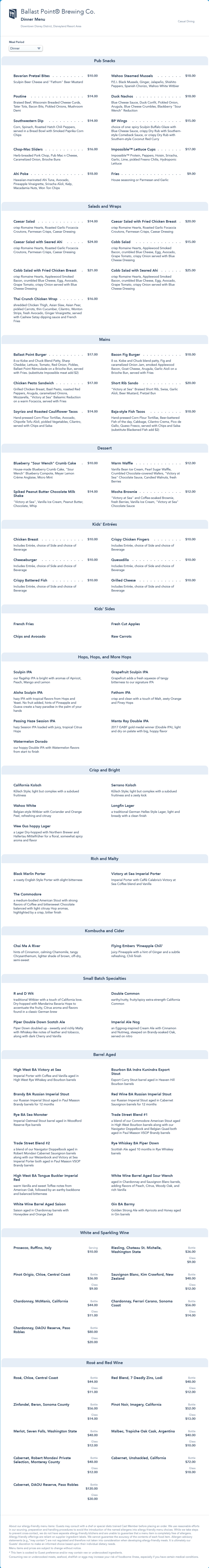 Ballast Point Brewing Co Dinner Menu - May 2021 (archived)