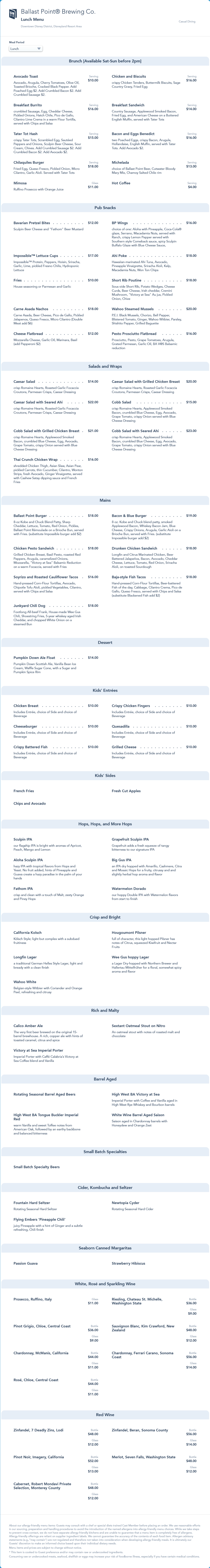- Replaced a majority of the Brunch items and increased prices by $2-$6