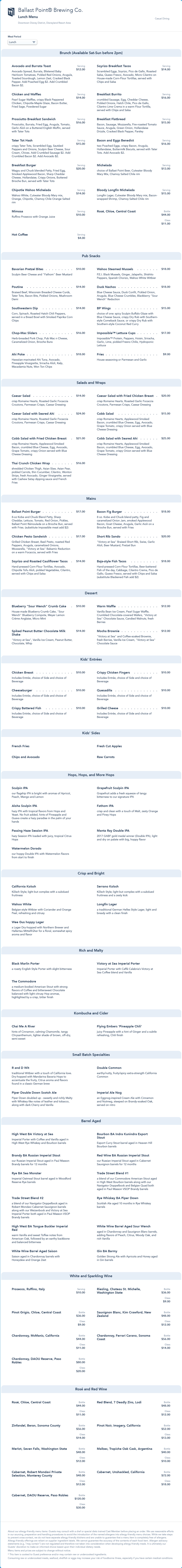 Ballast Point Brewing Co Lunch Menu - May 2021 (archived)