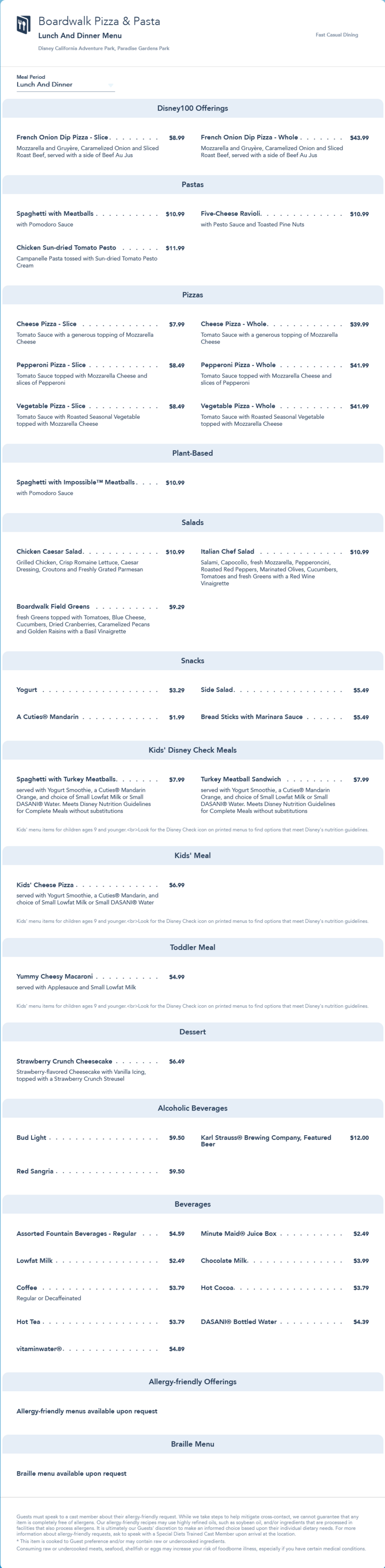 Boardwalk Pizza & Pasta Lunch/Dinner Menu - August 2023