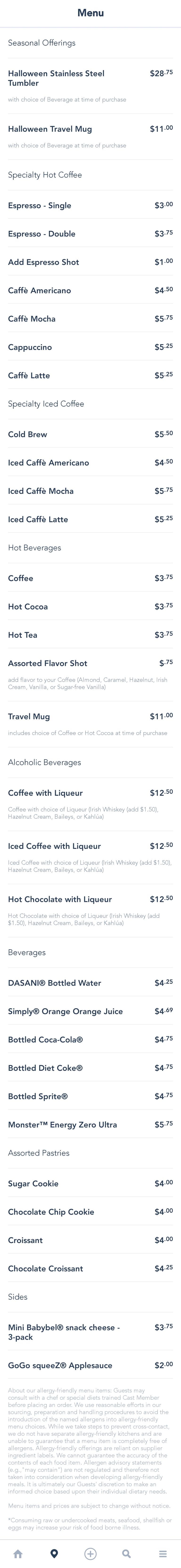 This menu was replaced by an updated menu in November 2021 that replaced the Halloween seasonal Tumbler and Mug with the Christmas seasonal Gingerbread Cookie, Tumbler and Mug.
