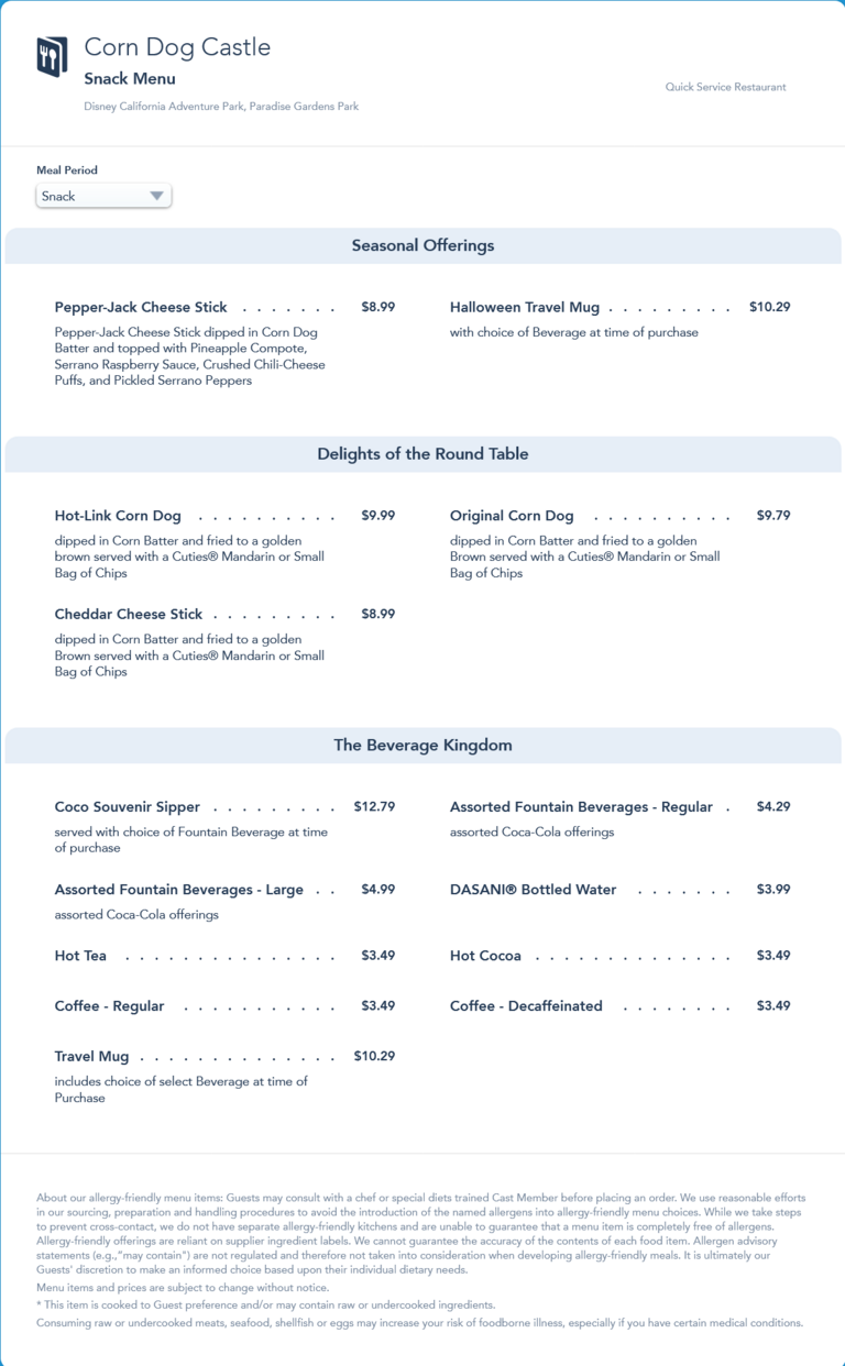 Corn Dog Castle Snack Menu - September 2021 (archived)