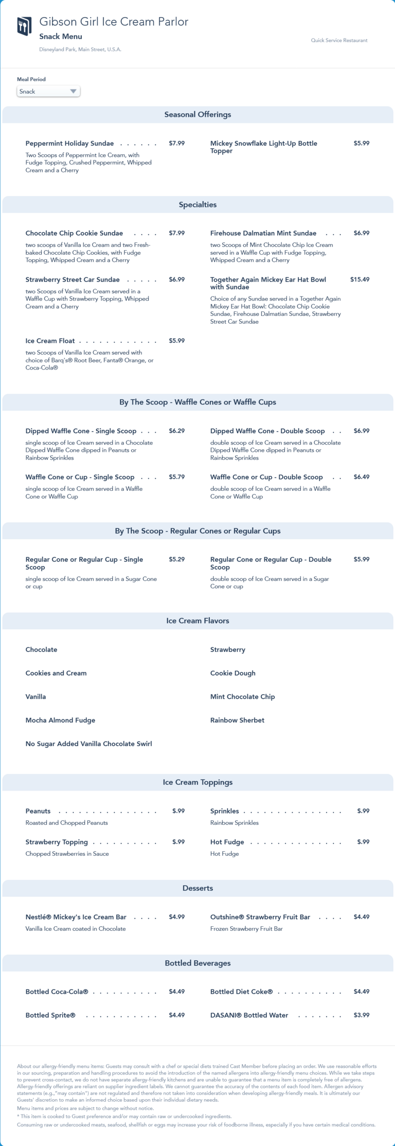 Gibson Girl Ice Cream Parlor Snack Menu - January 2022 (archived)