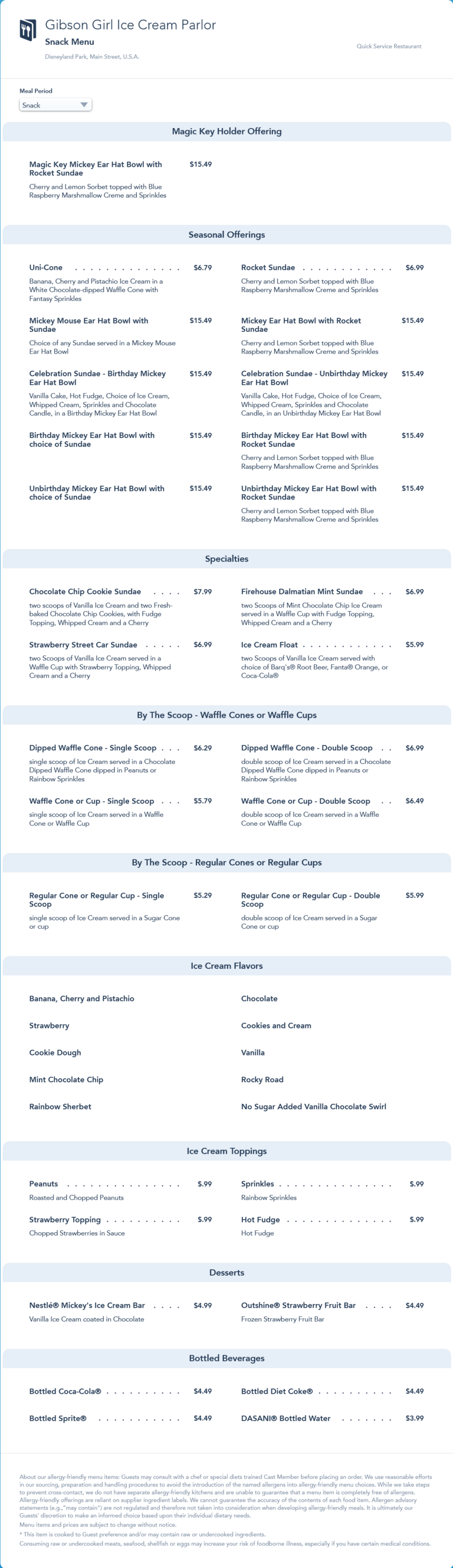 Gibson Girl Ice Cream Parlor Snack Menu - July 2022