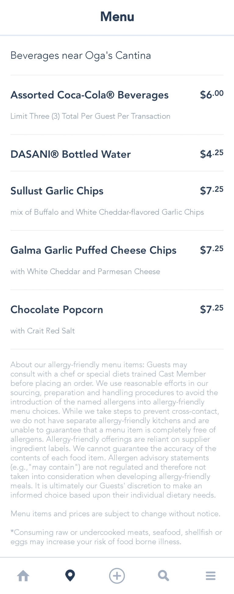 Jat Kaa's Coolers: J3-KC near Oga's Cantina Snack Menu - May 2022