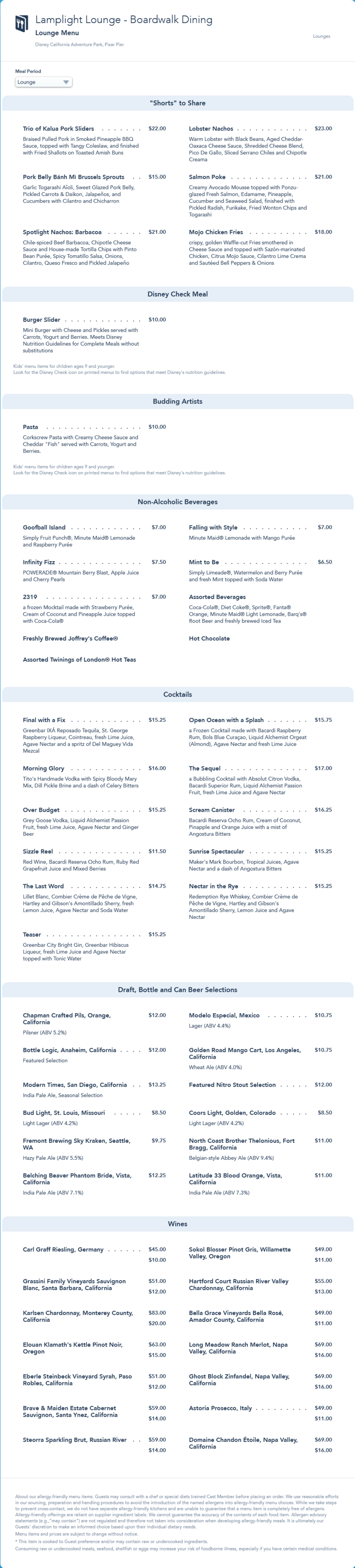 Lamplight Lounge - Boardwalk Dining Lounge Menu - May 2022