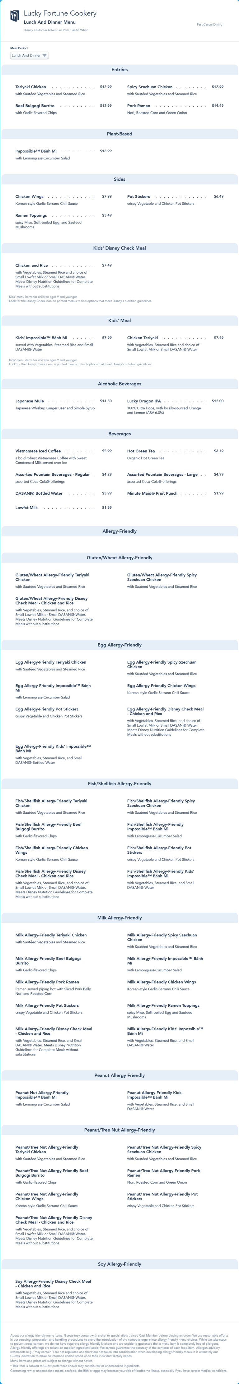 Lucky Fortune Cookery Lunch/Dinner Menu - May 2022