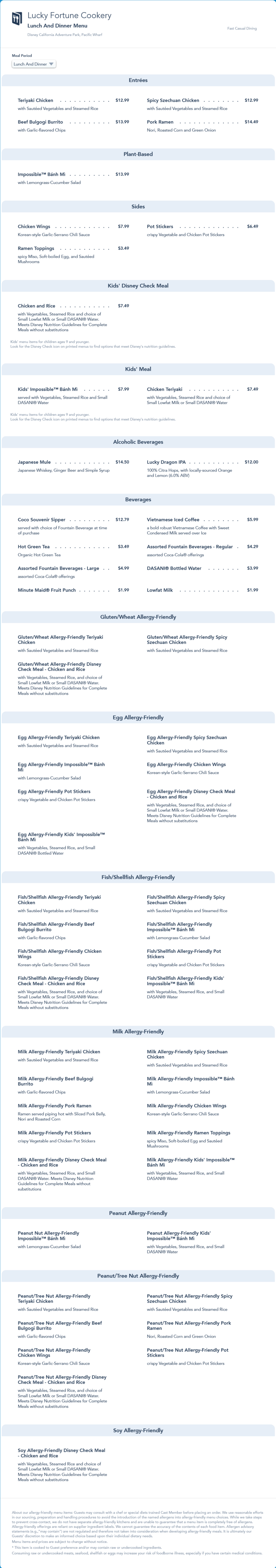 Lucky Fortune Cookery Lunch/Dinner Menu - September 2021