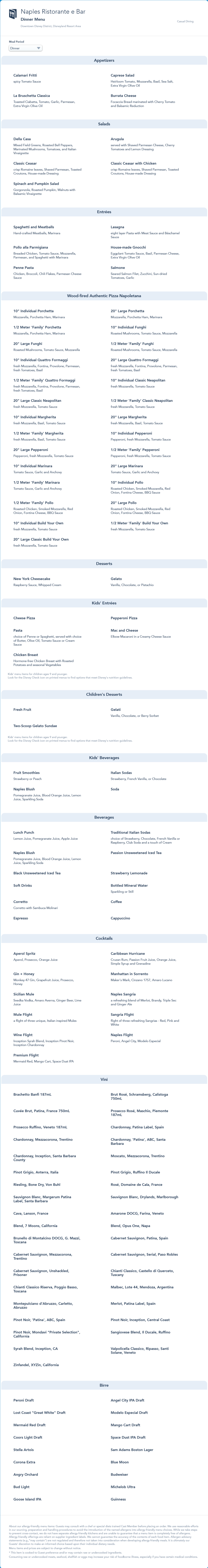 Naples Ristorante e Bar Dinner Menu - May 2021