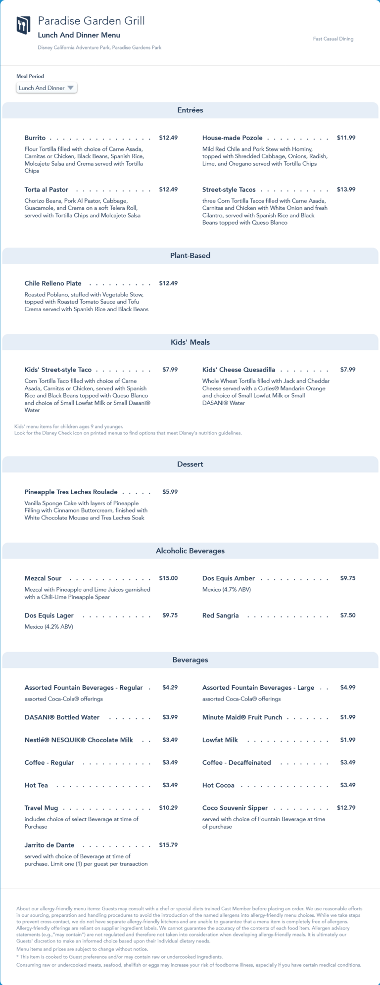 Paradise Garden Grill Lunch/Dinner Menu - November 2021 (archived)