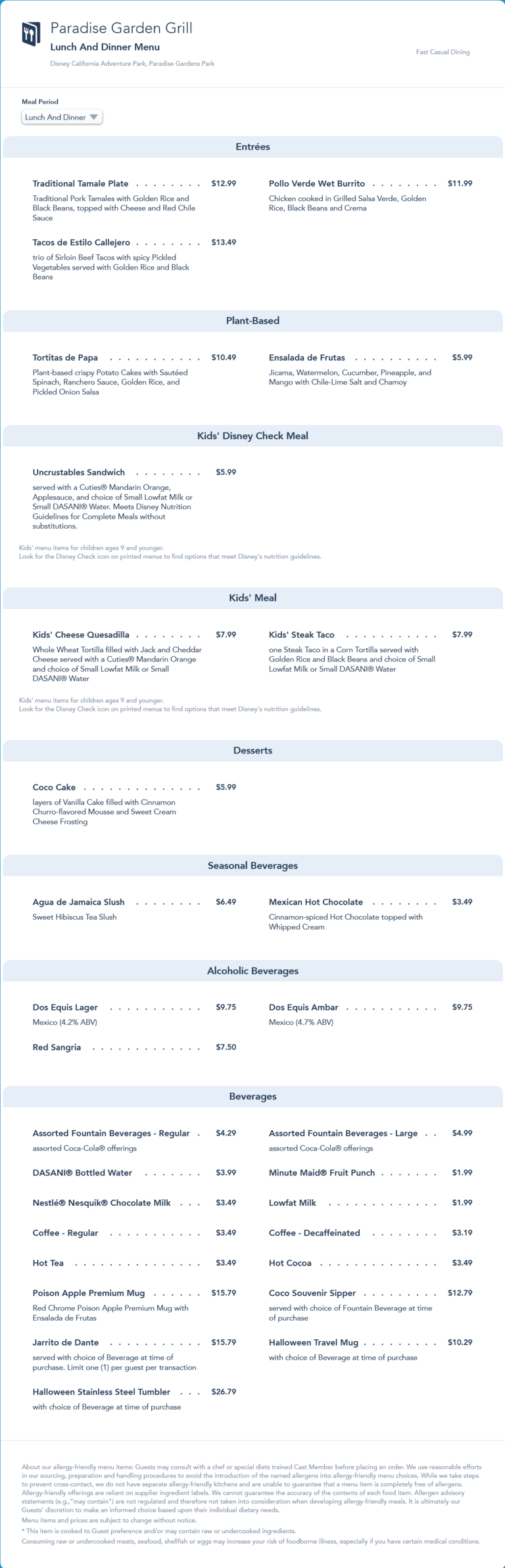 Paradise Garden Grill Lunch/Dinner Menu - September 2021 (archived)