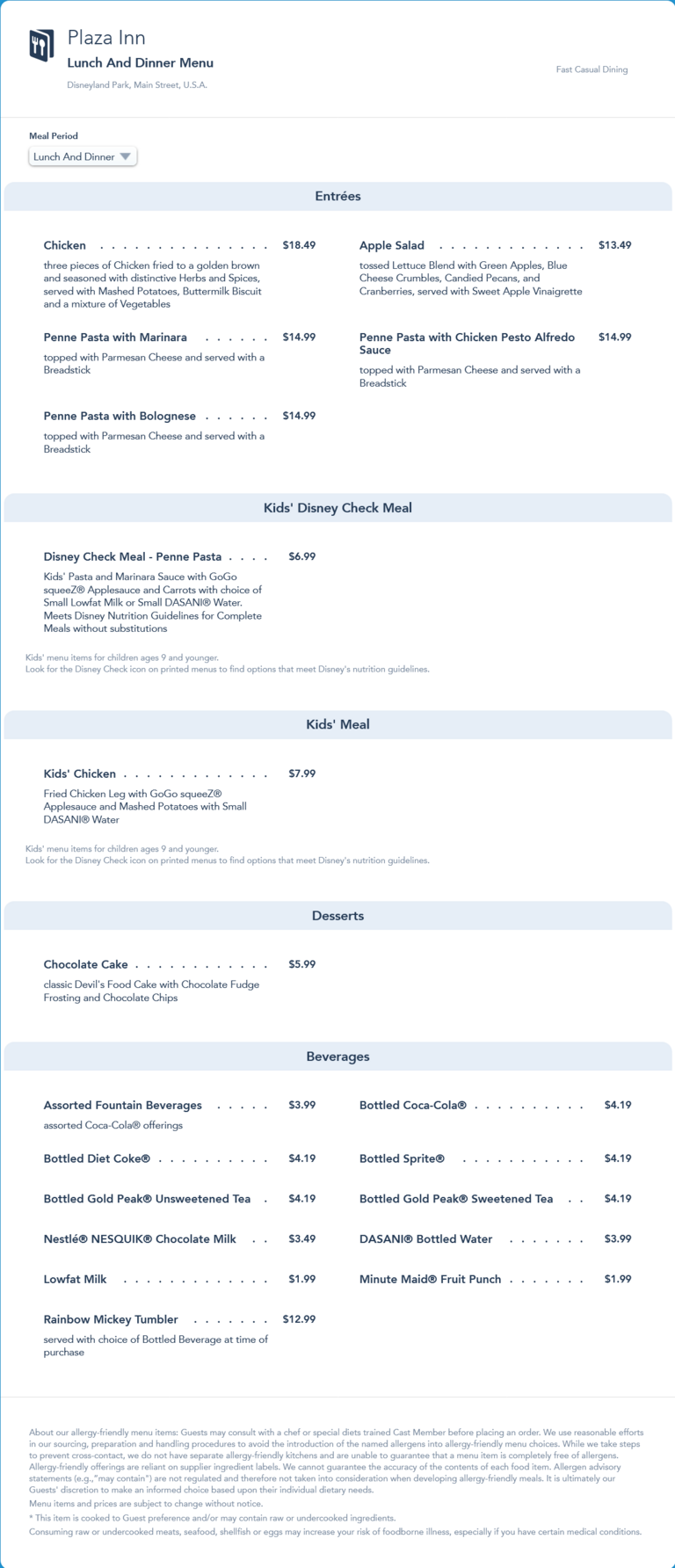 Plaza Inn Lunch/Dinner Menu - July 2021