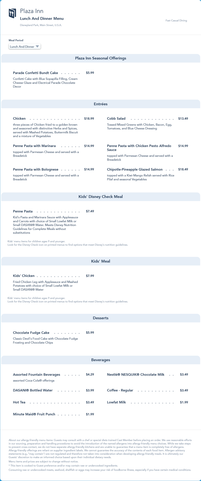 May 2022 menu. This menu replaced the Winter seasonal menu and added the Parade Confetti Bundt Cake.