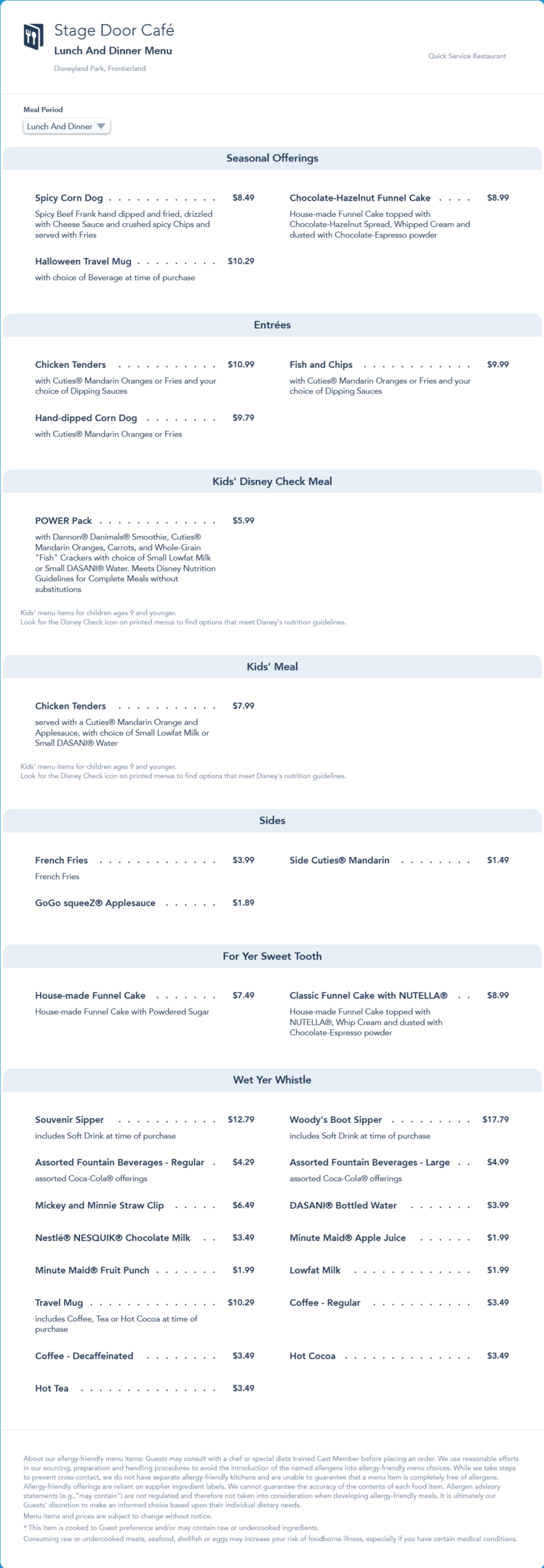 Stage Door Café Lunch/Dinner Menu - September 2021