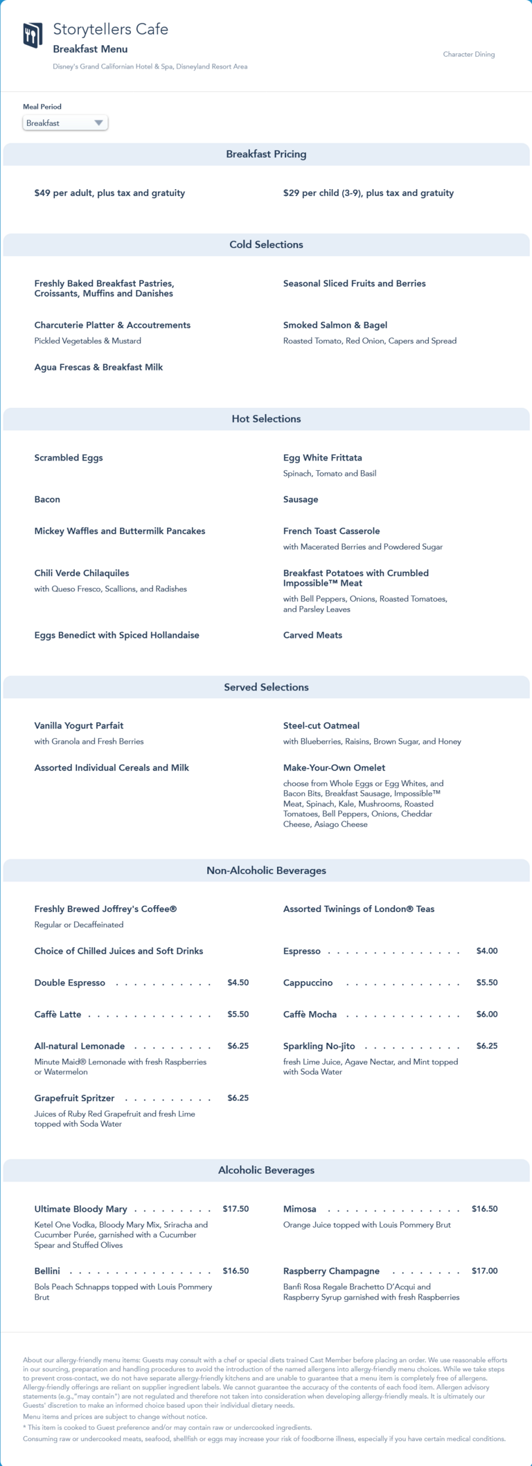 updated breakfast menu in May 2022 that replaced the French Toast Casserole Hot Selection with Seasonal French Toast.