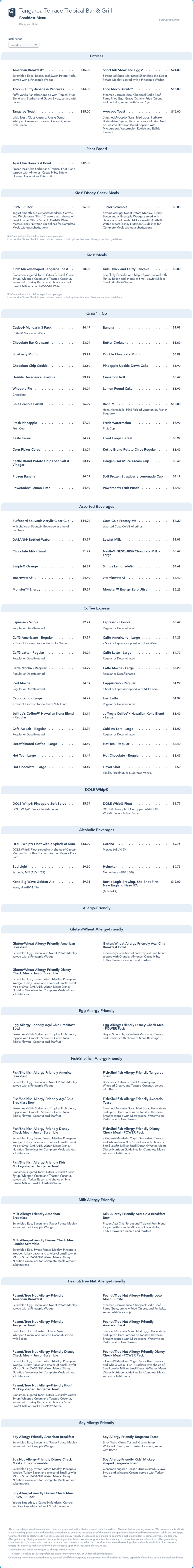 Tangaroa Terrace Tropical Bar & Grill Breakfast Menu - July 2022