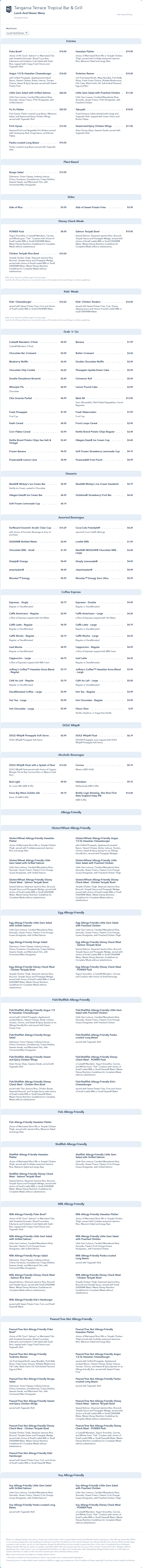 Tangaroa Terrace Tropical Bar & Grill Lunch/Dinner Menu - July 2022