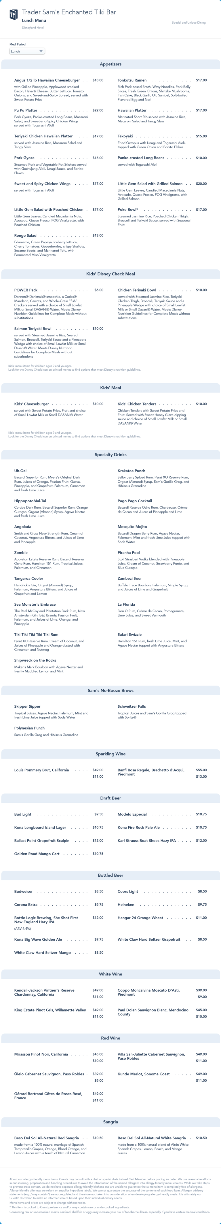 Trader Sam's Enchanted Tiki Bar Lunch Menu - May 2022