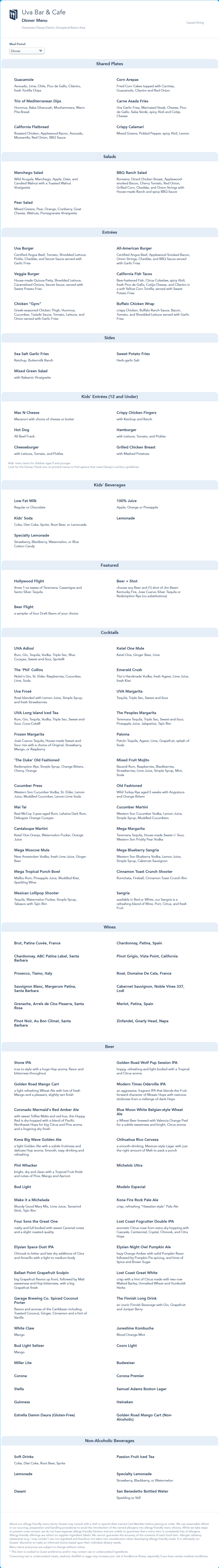 Uva Bar & Cafe Dinner Menu - April 2021 (archived)