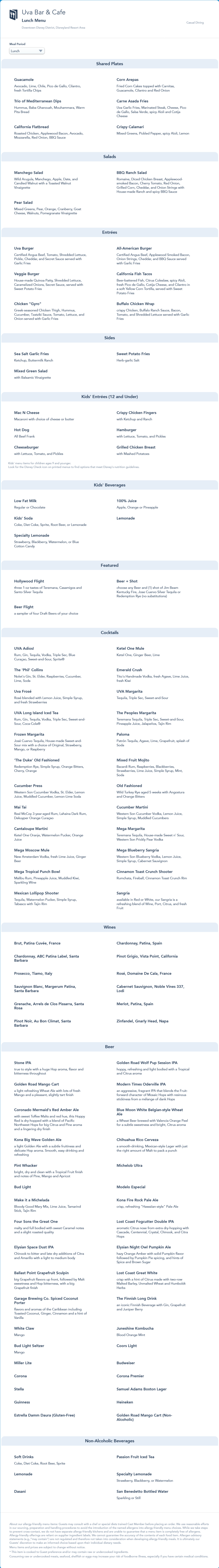 Uva Bar & Cafe Lunch Menu - April 2021