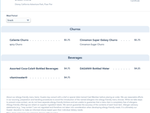 All churro carts sell bottled beverages. If you are sensitive to any of the listed allergens, it is recommended that you purchase drinks from another location with less chance of cross contamination.
