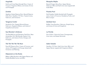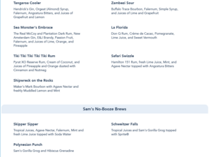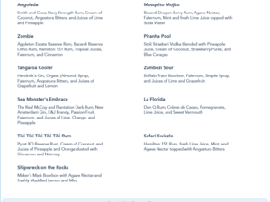 Trader Sam's Enchanted Tiki Bar Lounge Menu - July 2021 (pre-reopening)